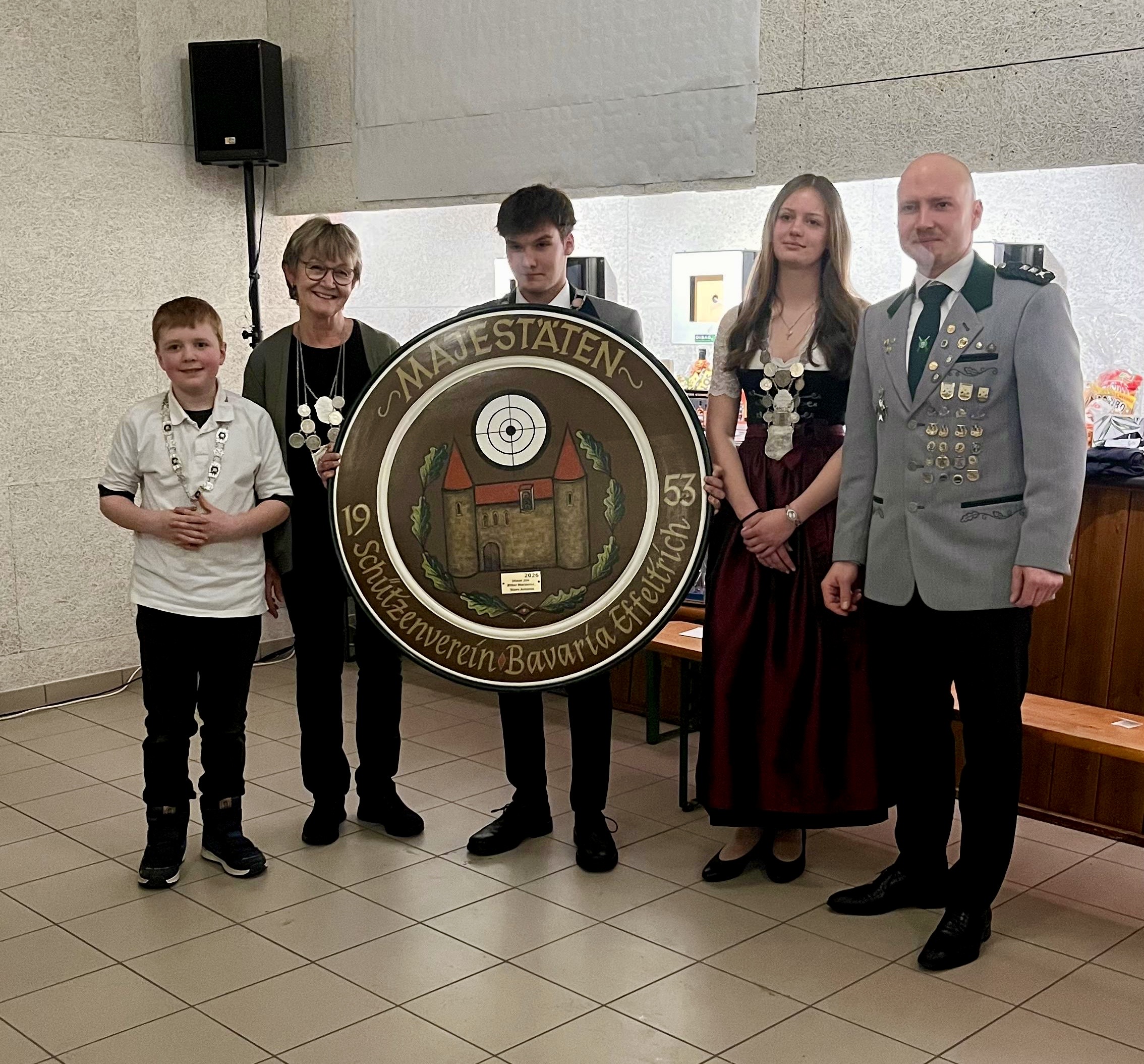 Jugendkönig Andreas Lux, Schützenkönig Roland Adelfinger, Damenkönigin Heidemarie Wolf (es fehlt auf dem Bild unser Prinz Felix Kaul)